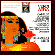 The following are not intended to be a critical assessment of any of the recorded performances, but a personal account of pleasures derived from listening to them. Do send in your own accounts of your favourite Caballe recording, and we'll share them with everyone out there. The title is listed first, then the major characters and conductor. Also notes on whether live or studio recording, date of performance or release and finally, the record label, item number and approximate price in U.S. dollars to guide you should you wish to go out and purchase the recording. Unless otherwise noted, Caballe of course sings the title role, and the medium is compact disc.