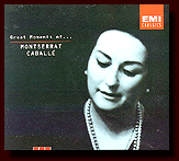 GREAT MOMENTS OF...MONTSERRAT CABALLE A CD compilation of various arias, duets and scenes from several operas. Several tracks contain duets with Montserrat's tenor husband, Bernabe Marti: a great souvenir of one of the opera world's lasting romantic partnership (maybe second only to their recording of Madama Butterfly, the opera with which they started their operatic, and subsequently, married life). Some of these have been released previously, like the third volume of the set; some released on CD for the first time. A very good sampling of several Caballe roles from bel canto to verismo operas-from Bellini's Il Pirata to Giordano's Andrea Chenier and everything in between, except for Mozart, which Caballe sang in the early years of her carreer. A great introduction to the art of Caballe if you don't feel like listening to whole operas.